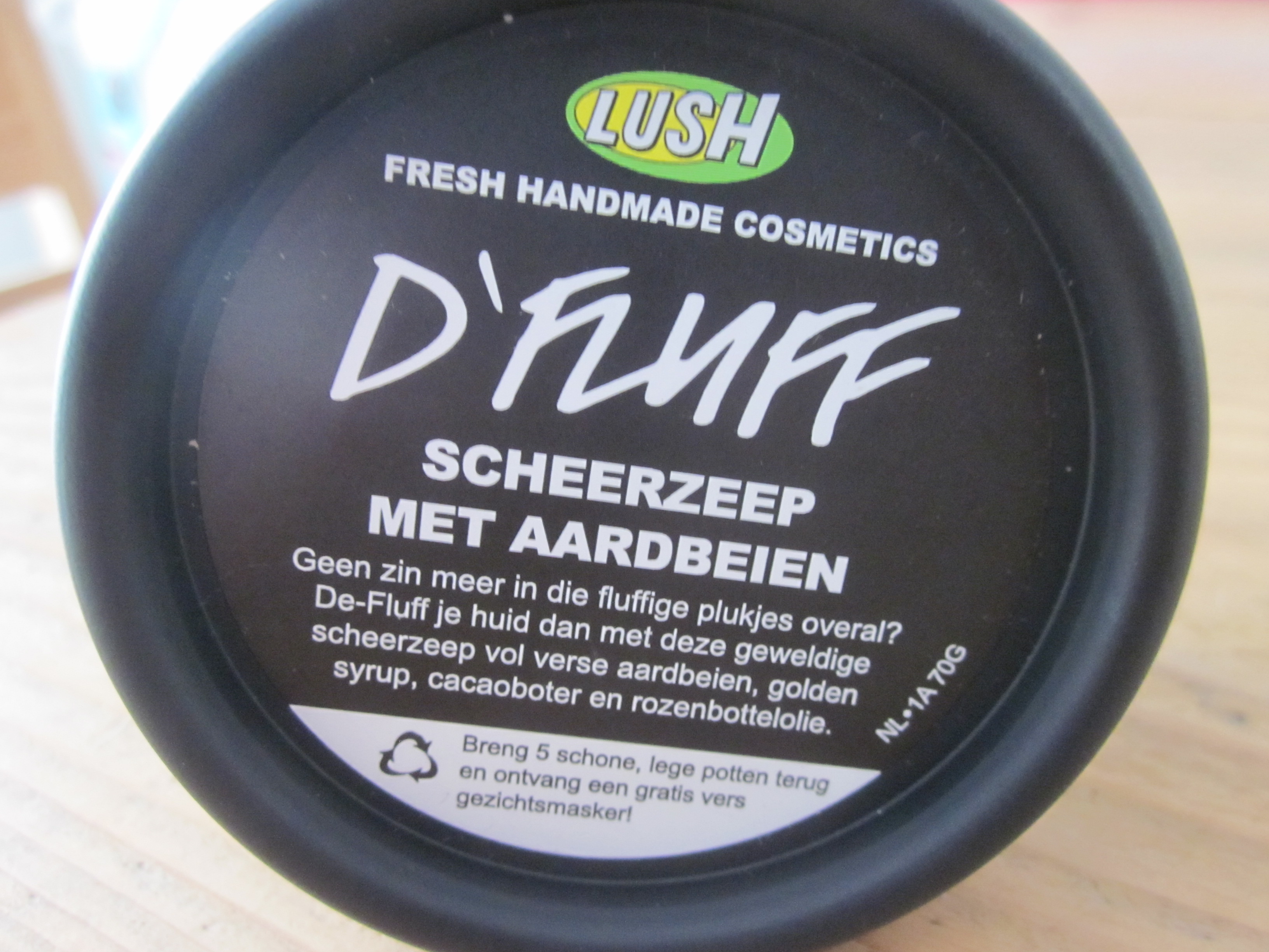 Deze keer was dat na een bezoek aan Amsterdam dus de nieuwe scheerzeep D’Fluff. En Fluffy is hij zeker. Het is een soort ‘opgeklopte’ mouse waar je door de geur ook best je tanden in zou willen zetten.  De scheerzeep heeft een heerlijke aardbeien geur. Normaal  gebruik ik nooit scheerzeep maar ik had wat reviews gelezen en wilde hem daardoor zelf ook graag proberen.