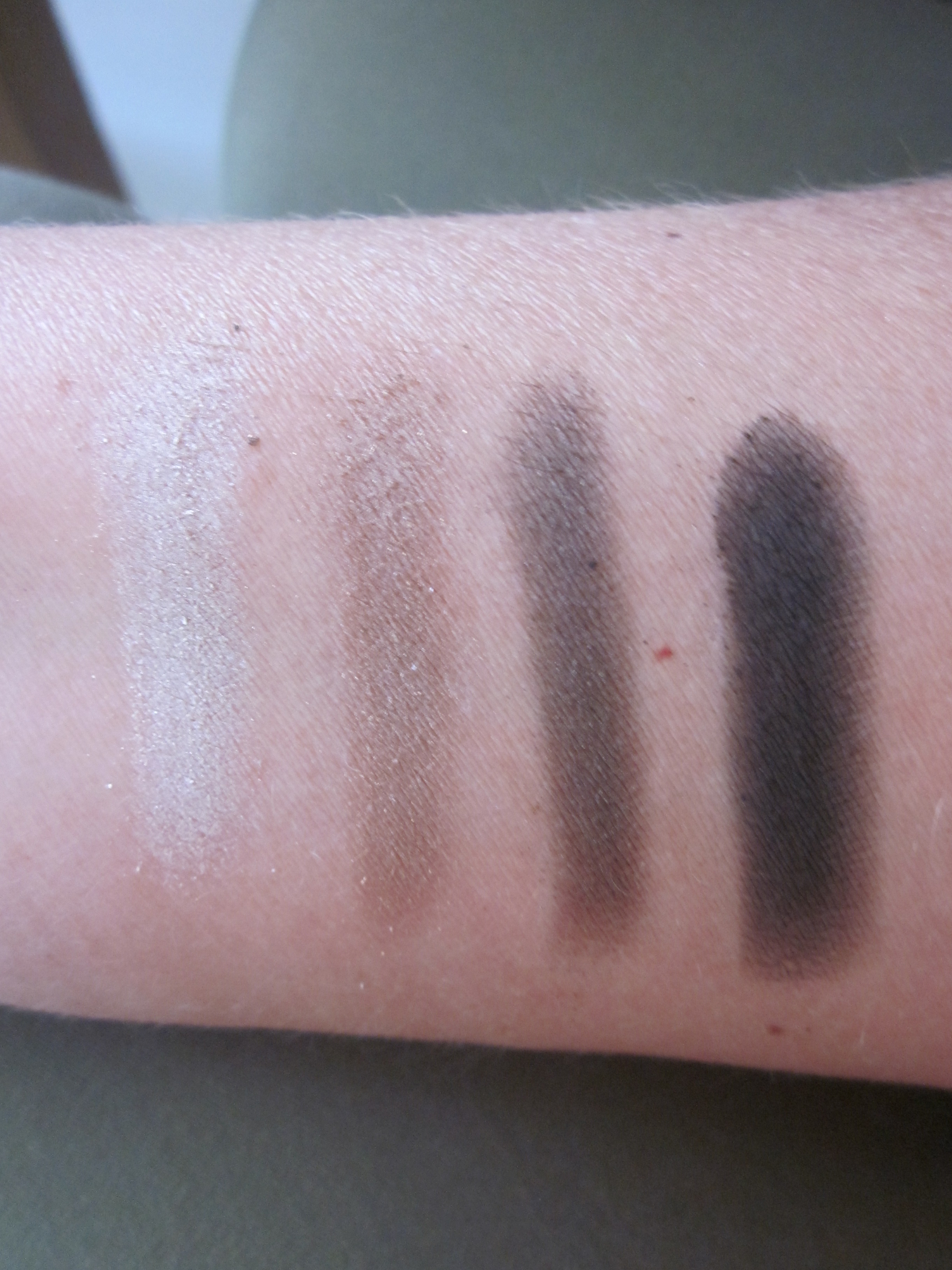 Sommige kleurtjes kruimelen wel wat maar dat is een kwestie van even je kwastje aftikken voor je het aanbrengt op je ogen. Op de achterkant van de verpakking vind je de kleuren en de namen.
