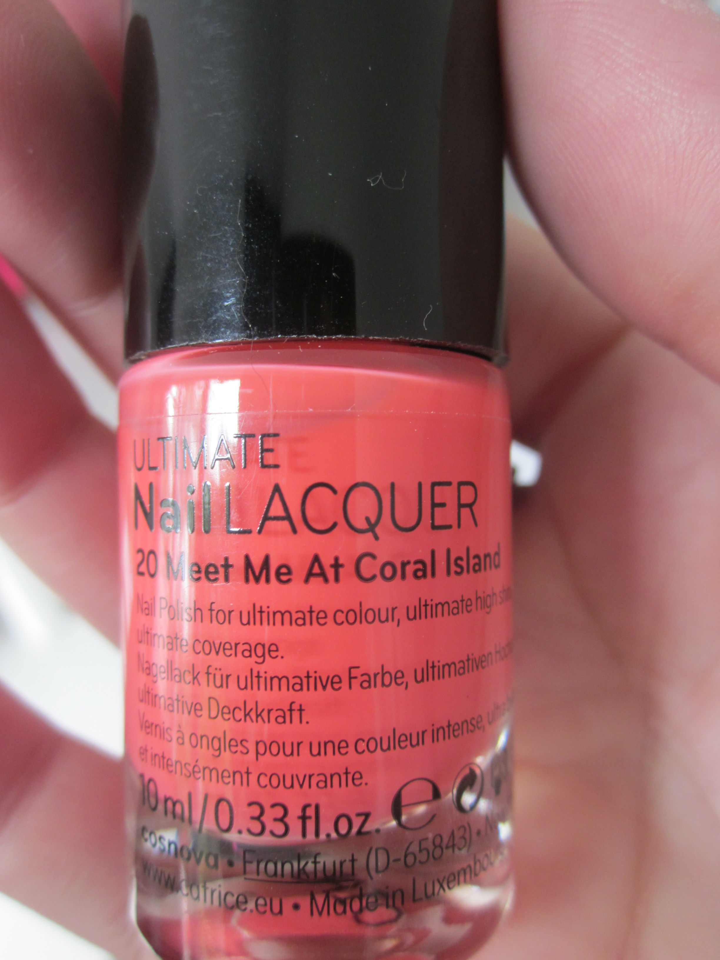 Deze keer ging ik dan ook naar de nagelstudio met deze kleur op zak van Catrice. Het is de kleur 20 Meet Me At Coral Island. Een mooie koraal kleur. Lekker fel en dus uitermate geschikt voor de vakantie.