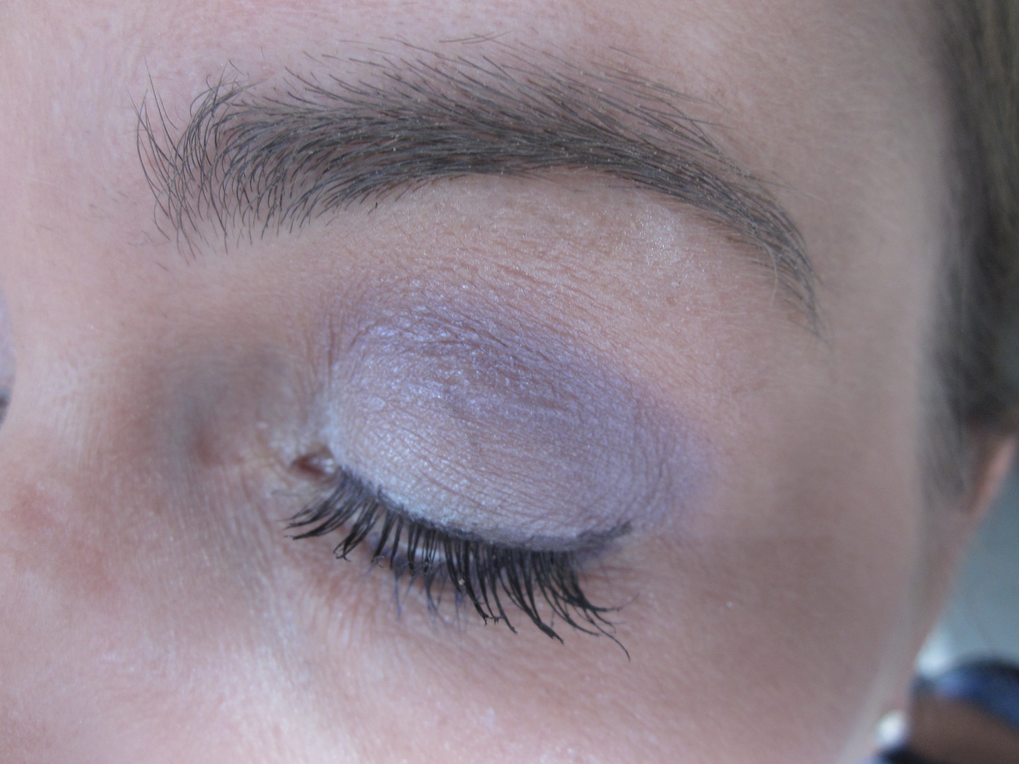 Ik houd erg van paars in mijn ooglook en na de nude-tinten is het mijn go-to kleur. De swatches zagen er al veelbelovend uit. De oogschaduw kruimelt wel een beetje zoals je kunt zien na het swatchen maar als je je oogschaduw kwastje goed aftikt heb je hier verder geen last van. Het kwastje dat bij het doosje komt gebruik ik alleen voor de swatches want verder kun je daar niet veel mee.