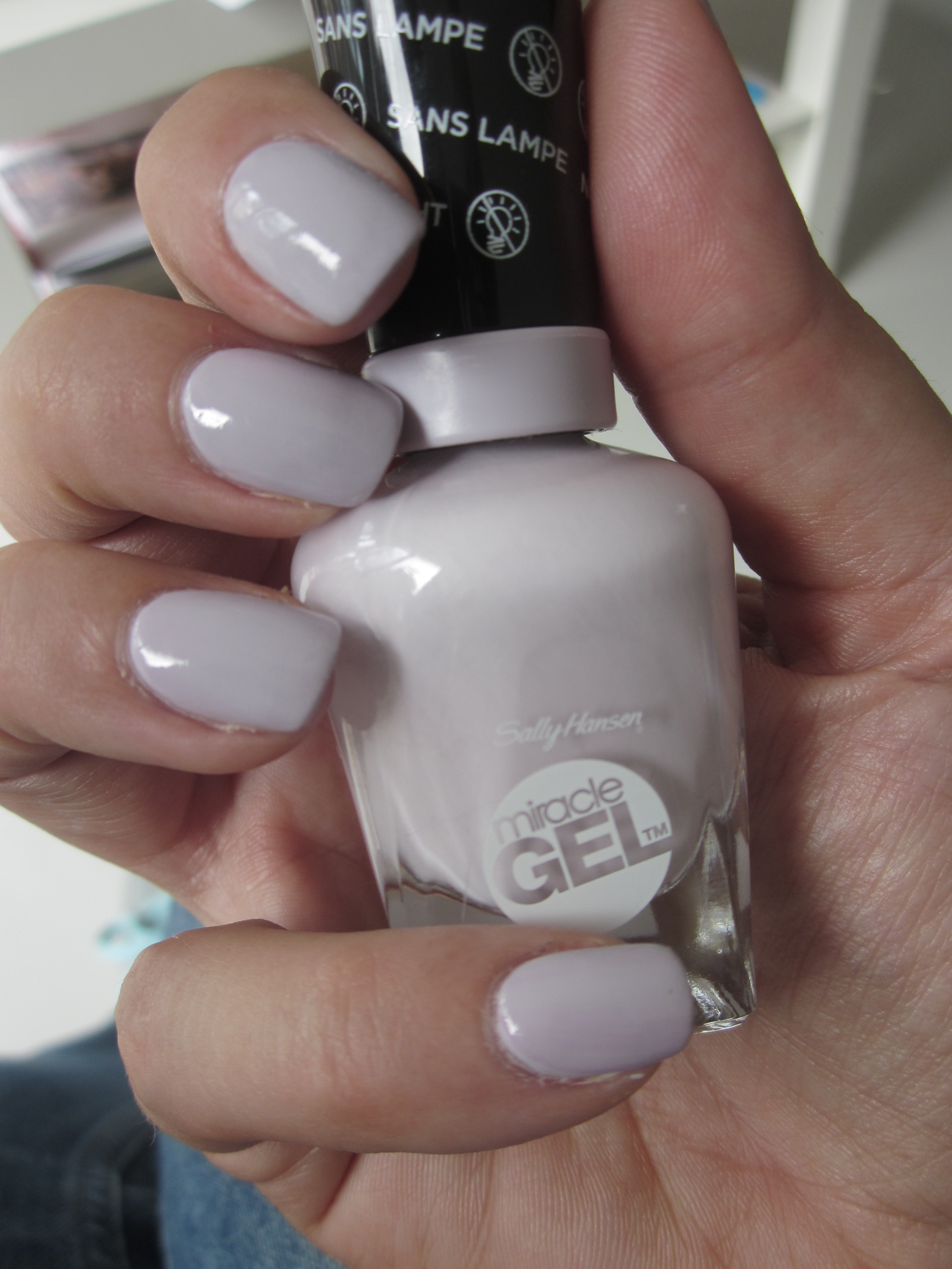 Anyway, ik ging weer voor het opvullen van mijn nagels naar de nagelstudio en moest dus ook weer nadenken over welke kleur nu? Bij de Etos zag ik de nieuwe Sally Hansen Miracle lakjes met 30% korting dus besloot uit deze lijn een kleurtje te kiezen. Ik koos voor de Lila/grijze kleur All Chalked up.