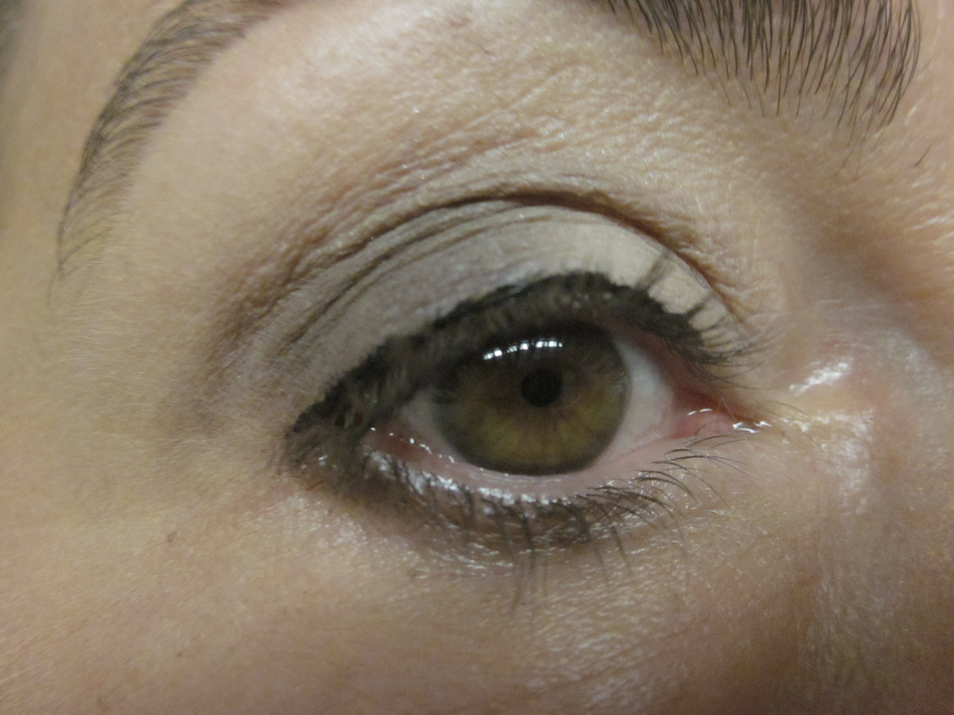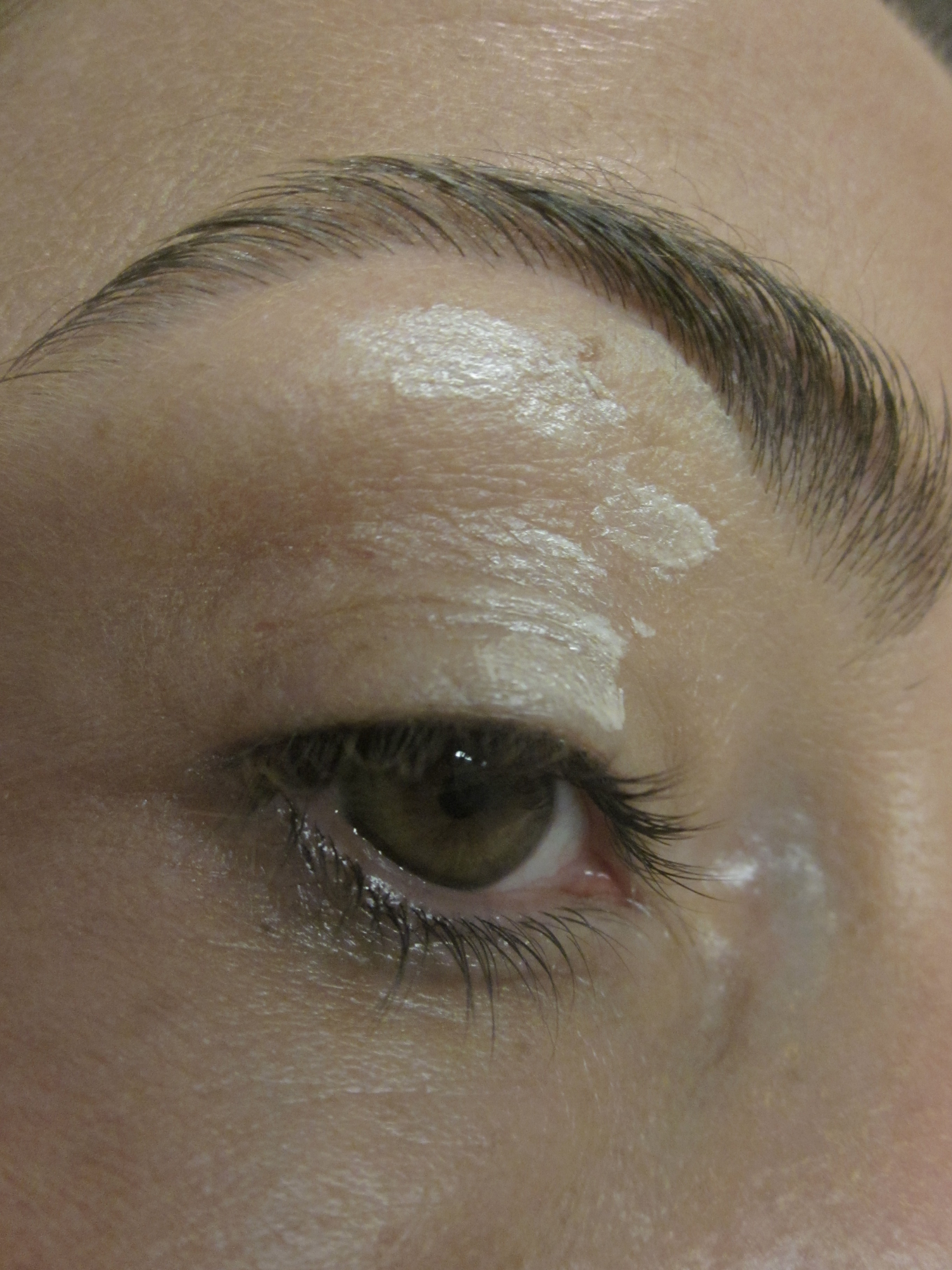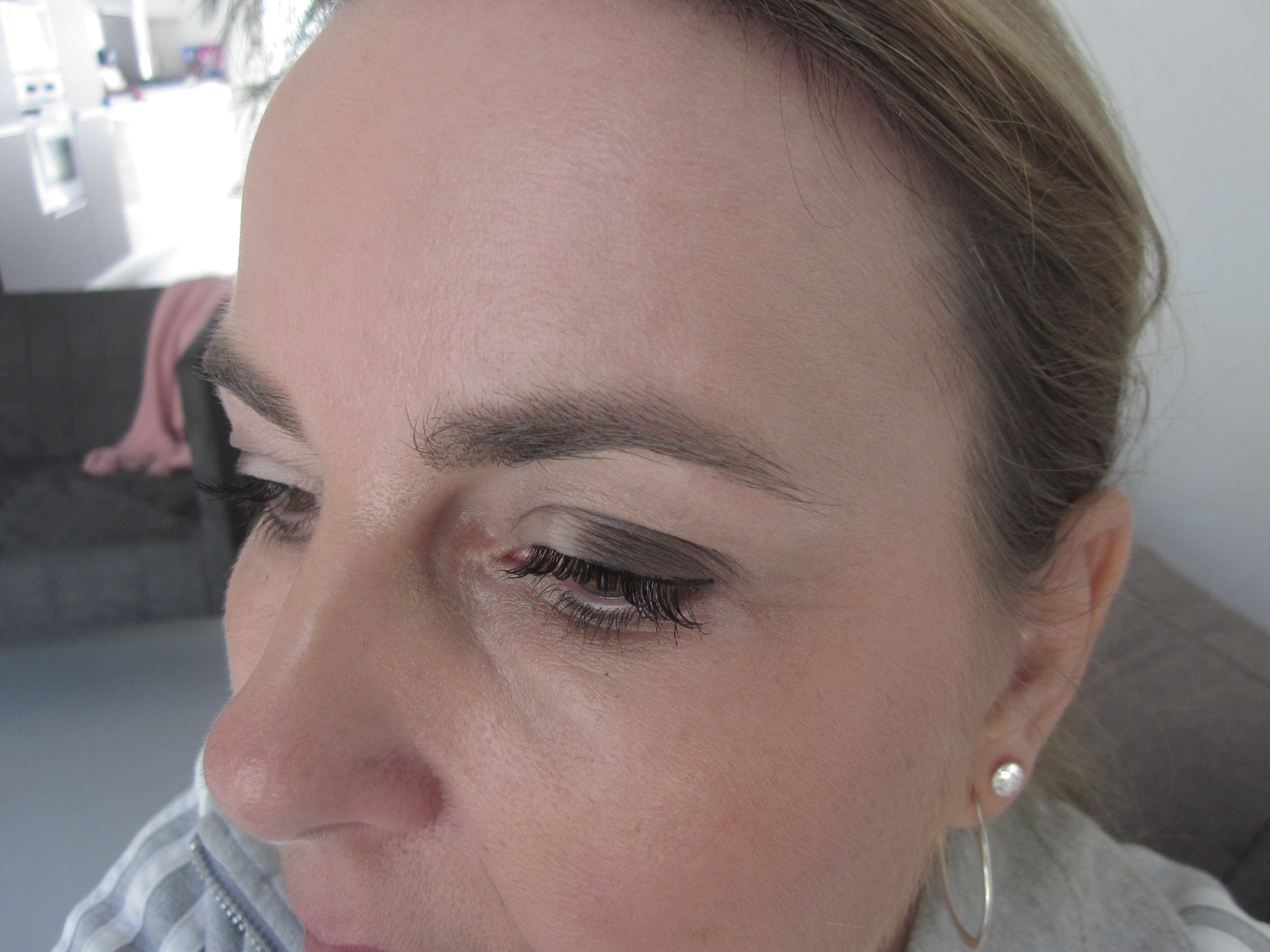Ik gebruik dit palette nu al enkele weken met veel plezier en ik merk dat ik hem zeker een paar keer per week voor een ooglook gebruik. Ik begin altijd met een primer (in dit geval van de Hema). Hier heb ik de tweede lichtroze kleur over het hele ooglid aangebracht. De een na donkerste kleur in de buitenste ooghoek. De vierde kleur (van links gezien) in de crease. Met een wattenstaafje bracht ik ook nog wat van de een na donkerste kleur onder mijn oog aan. Voila, ik vind dit dus echt heel erg mooi voor naar kantoor.