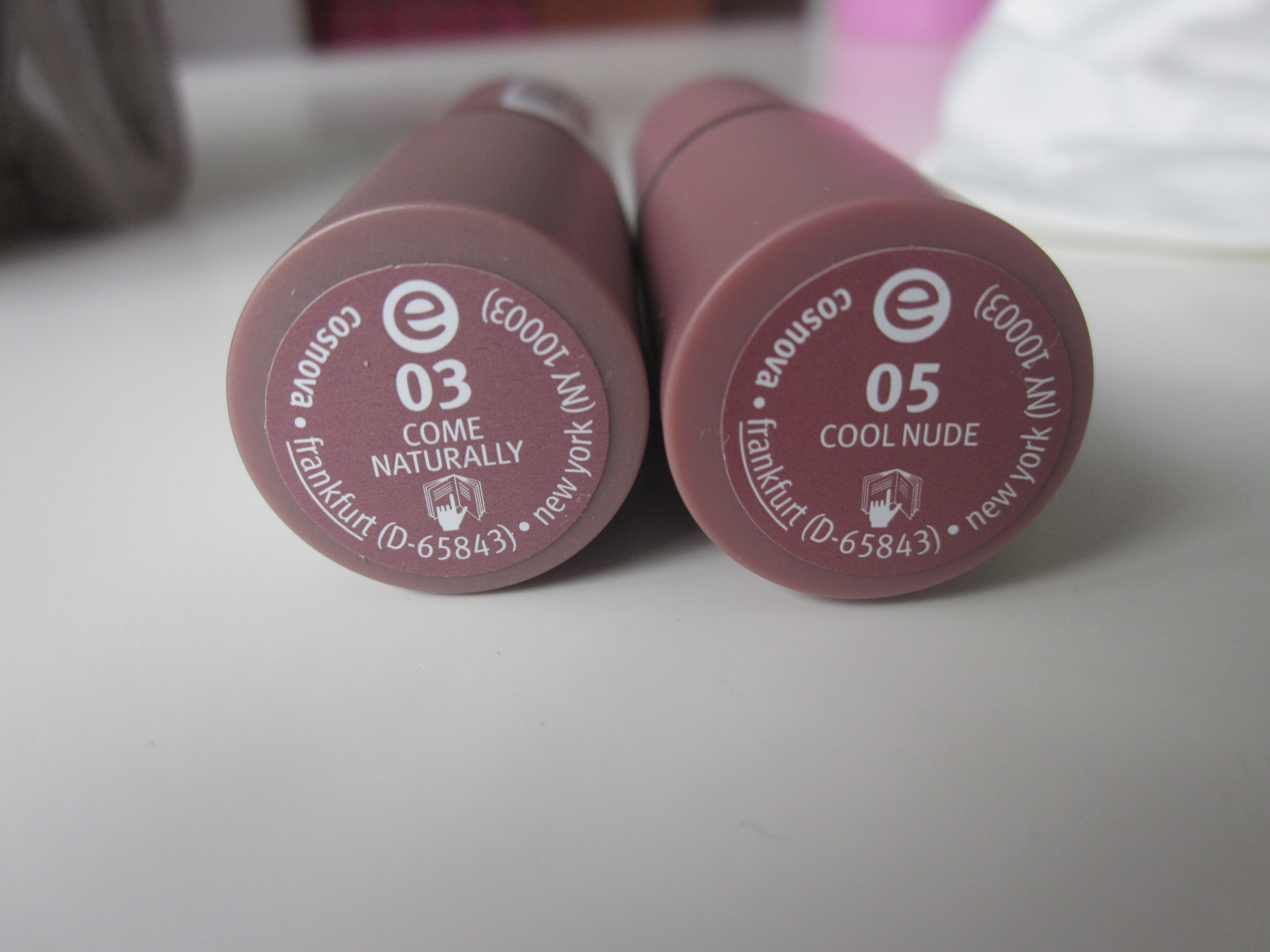 Van de nieuwe nude lijn van Essence nam ik twee lipsticks mee. Te weten de kleuren 03 – Come Naturally en de 05 – Cool Nude. De andere kleuren spraken mij niet aan. Denk ook niet dat deze mij goed zouden staan. De 03 en de 05 zijn de twee donkerste uit de collectie.