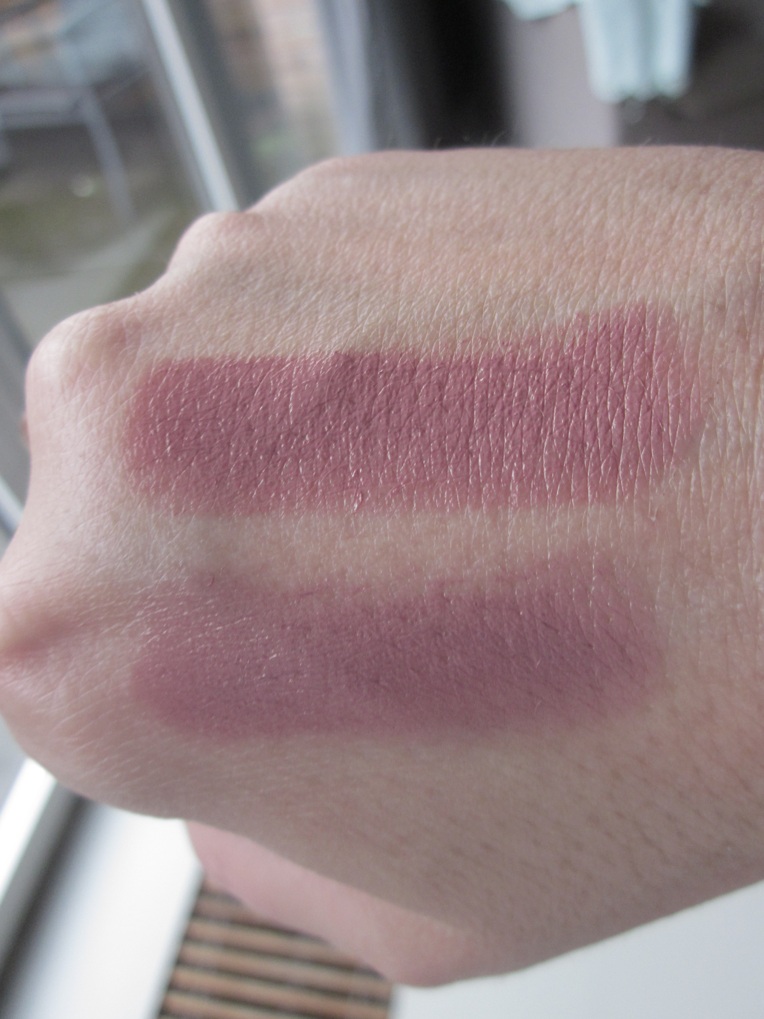 Volgens de beschrijving zouden het long-lasting lipsticks zijn maar daar ben ik het niet mee eens. Als je wat gegeten of gedronken hebt moet je wel even bijstiften. Ook zijn ze niet mat, wat ik persoonlijk niet erg vind want daar houd ik niet van. Het moet wat mij betreft wel een beetje vettig zijn op de lippen anders zit het gewoon niet fijn of sta ik alweer met mijn labello in de aanslag 🙂