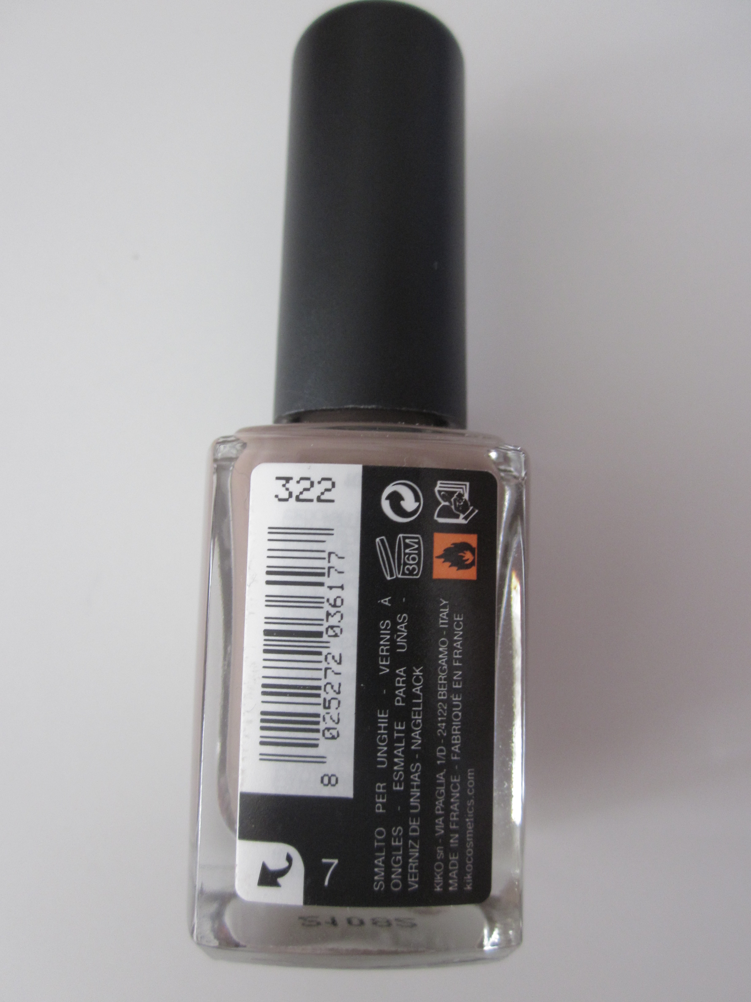 Nu heb ik voor deze gekozen. De laatste keer in Duitsland plukte ik dit lakje uit de Sale bak bij de Kiko. Ik houd nu eenmaal van hele neutrale kleuren. Het is kleur nummer 322 (ik zie nergens een naam) en is mooi bruin. Beetje cappuccino/chocolade-achtig. Ik betaalde slechts EUR 1,- voor dit lakje.