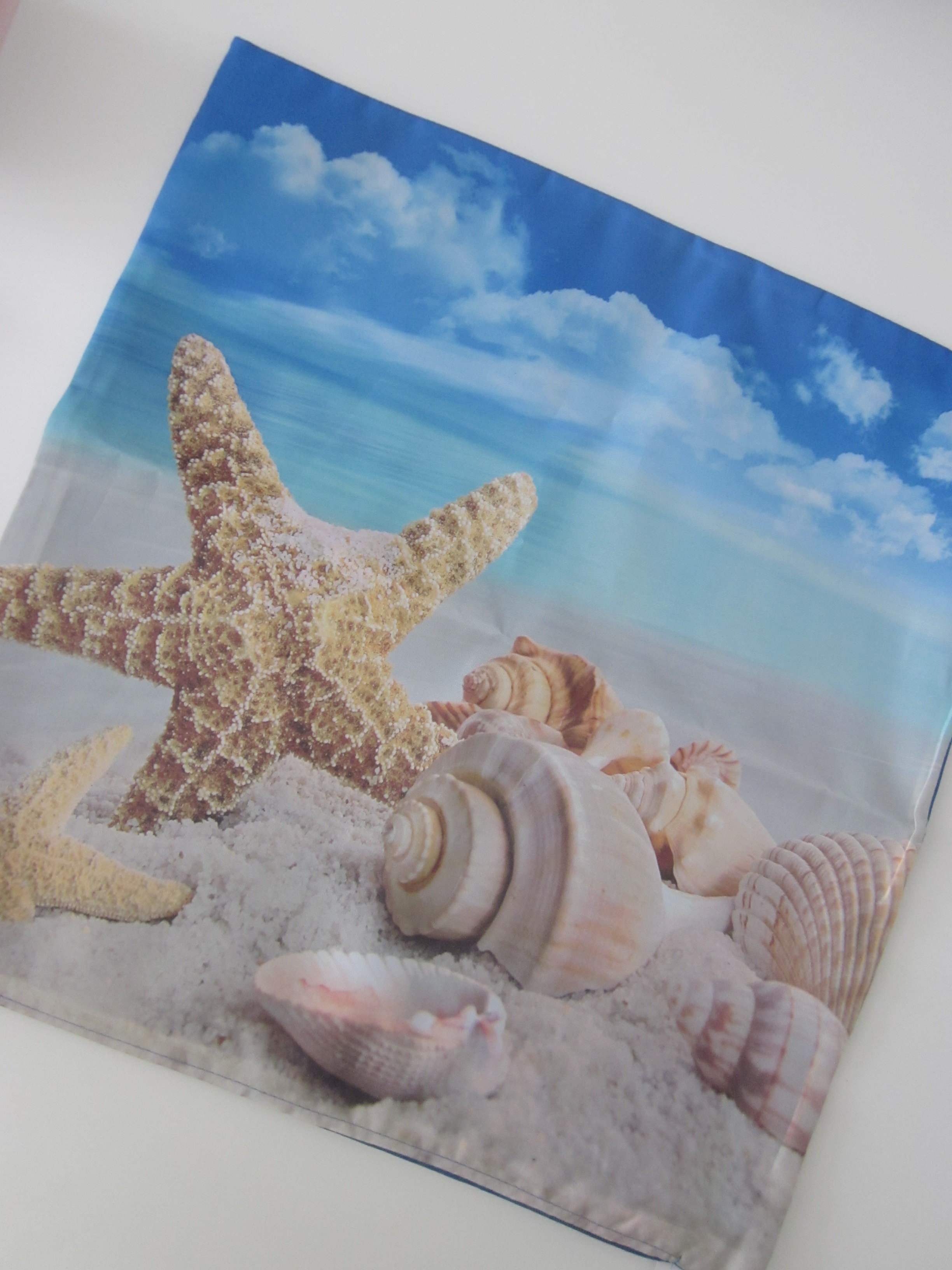 En zie daar! Ik zag deze leuke kussenhoezen. Lekker helemaal zomers en in een leuk strand thema. Ik nam twee verschillende mee (volgens mij zijn er 4 verschillende). De ene heeft een beetje blauw en de zee op de achtergrond en de andere is van het strand met op beide mooie schelpen.