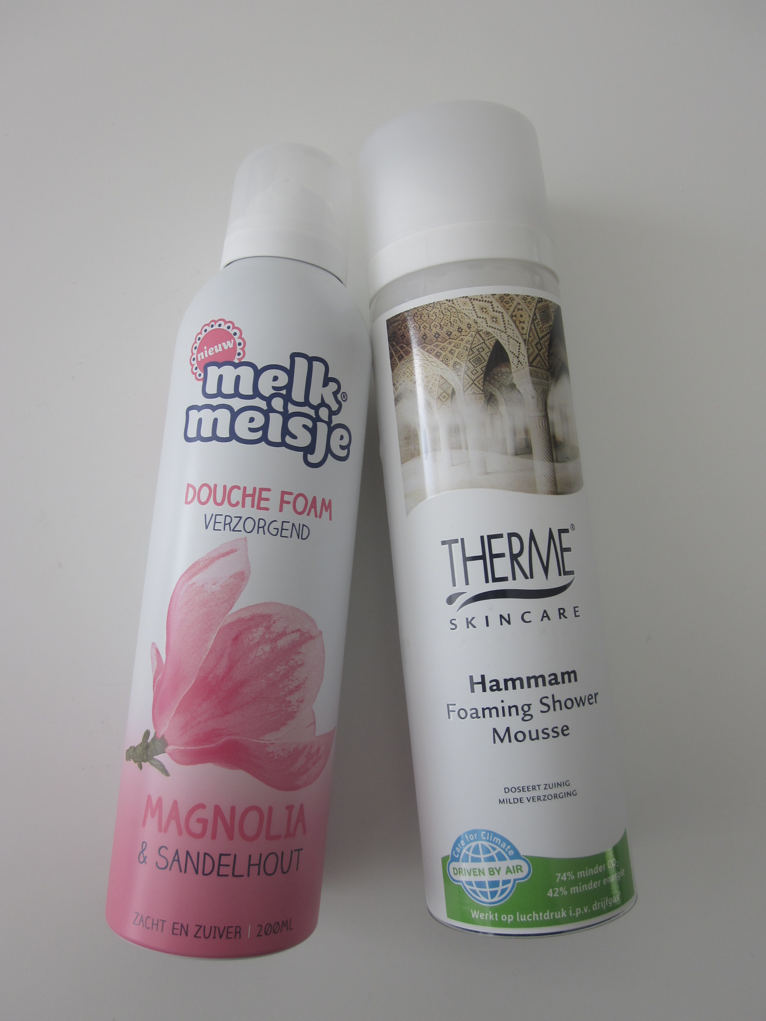 1. Melkmeisje heb ik nooit gebruikt. Therme ook niet. 😦 Maar ik mis het niet omdat ik de foam gebruik van Appie. Zo lekker en het kost maar 2.50 per 200 ml. Ik heb een bus gegeven aan een vriendin als bedankje en ze zei dat het veel lijkt op Rituals. Dat heb ik ook nooit uitgeprobeerd. Dus ik blijf bij mijn lekkere appie. Claudy