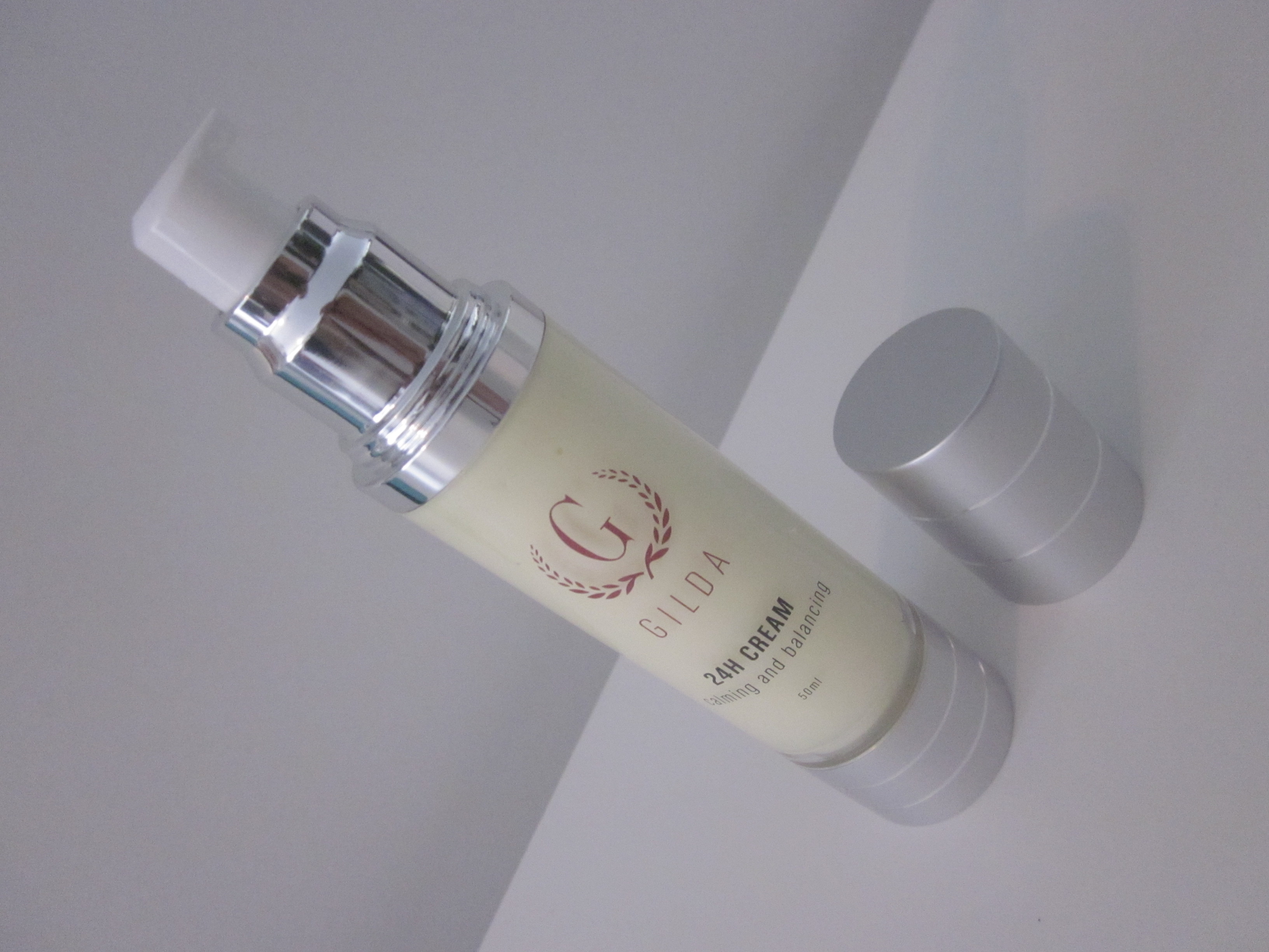 We beginnen met een 24-uurs creme van het merk Gilda Cosmetic. Het is een behoorlijk duur product met zijn EUR 58,99. Het is een Zweeds luxe huidverzorgingsmerk opgericht door Gilda Liljeblad. De producten zijn ontworpen om te werken op specifieke huidtypen en huidcondities. Het product zit bomvol met natuurlijke en actieve ingredienten. Heerlijk , ik ga deze zeker proberen. Het flesje heeft een prachtige pompverpakking waarbij de bodem langzaam omhoog komt dus luchtdicht en je kunt goed zien wanneer je product bijna op is.