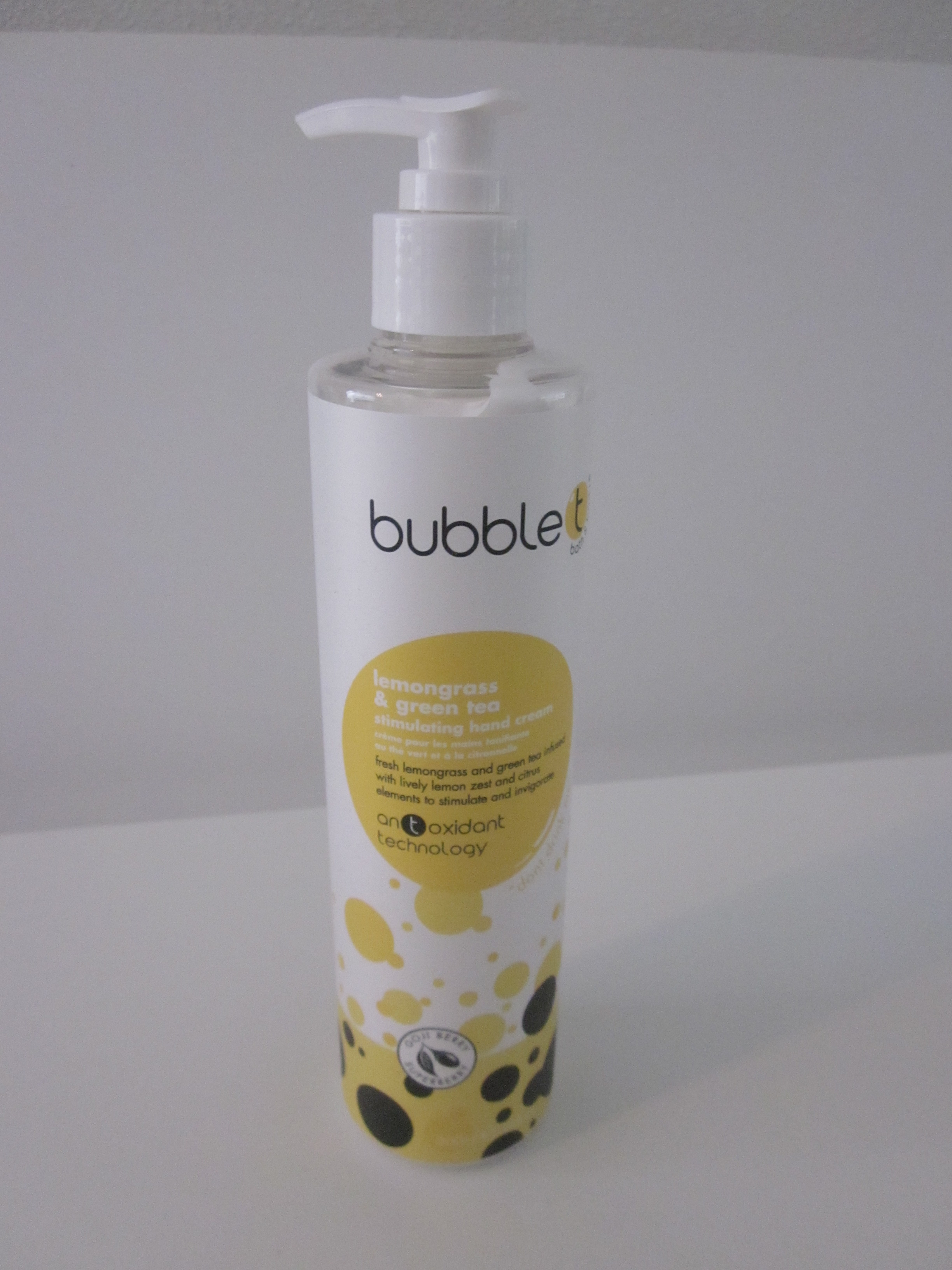 Het grootste product is een enorme fles handcrème (jammer, dat gebruik ik eigenlijk nooit). De waarde is EUR 12,95 en hij komt van het merk Bubble’t. Zoals de naam al doet vermoeden zijn ze dol op alles wat met thee te maken heeft bij dit merk. Er zijn 3 verschillende varianten en ik heb de geur Lemongrass & Green Tea ontvangen. Heerlijke geur, ik houd ervan (er is ook nog de variant Marrokaanse Munt en Hibiscus en Acair bessen). Alle varianten bevatten tevens een Goji berry extract, amandel olie en sheaboter. Je krijgt er dus superzachte handen van.