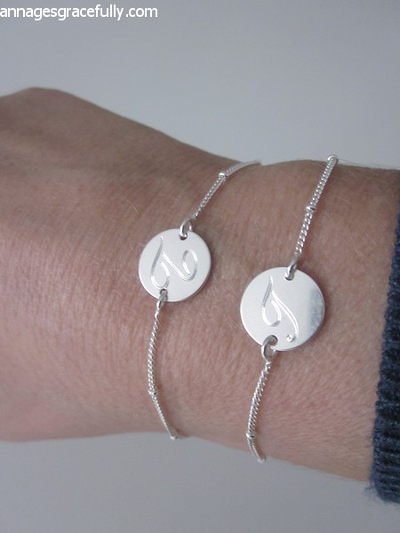 Die armbandjes zijn heel mooi en subtiel. Zijn dat de voorletters van de namen van je kinderen?
