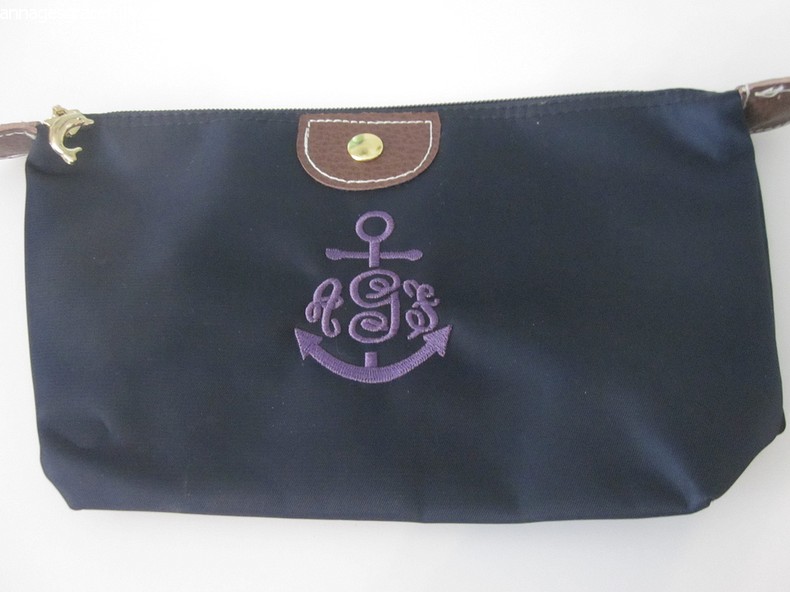 Van onze manager kregen we allemaal een gepersonaliseerde toilettas. Ze had ons eerder al naar onze initialen gevraagd (we begrepen al niet waarvoor dat nodig was) en onze favoriete kleur. Ik kreeg een toilettasje in de stijl van longchamp mooi donkerblauw met mijn intialen in paars geborduurd. Heel leuk en heel persoonlijk ook hadden we zo allemaal een ander soort toilettasje en andere kleuren etc.