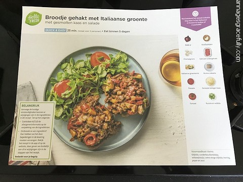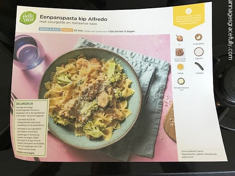 Ik deed deze week maar met 2 gerechten mee uit de box want ik ging onverwachts later in de week nog een keer pannekoeken eten buiten de deur J. Uit de box maakte ik de Thaise fusion salade met vegetarische runderpuntjes, heel lekker vond ik het maar de kinderen wilde liever ‘echt vlees’. De kip Alfredo hebben we al eens vaker gehad en een pasta gerecht is altijd goed. Tot slot dan het broodje Italiaanse gehakt met groenten. Ik at dus toen een lekkere appel met kaneel pannekoek.