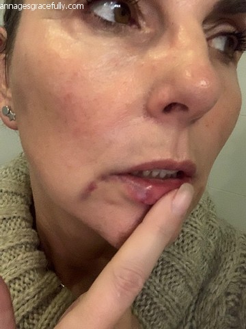In December (in de tweede week) had ik de tweede behandeling voor het mondgebied. Dat was een stukje pittiger. De traangoten werden opgevuld, de neus- lipplooi, mijn mondhoeken en een beetje mijn lippen. Heftig hoor maar het doet geen zeer, wederom door de verdoving die je krijgt. De mondhoekjes vond ik wel even vervelend en de meest pijnlijke plek.