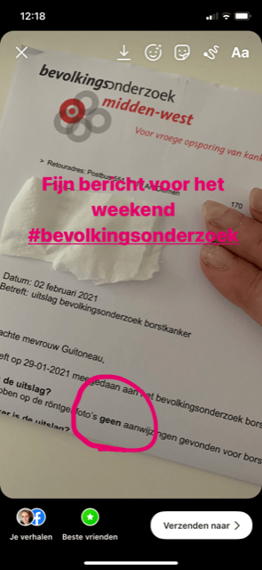 Vandaag heb ik wat tijd uitgeboekt omdat ik aan een juridisch document moet werken en daar echt even geconcentreerd mee bezig moet, zet wel een muziekje op de achtergrond anders is het wel heel stilletjes. Ik klap de laptop lekker op tijd dicht en ga aan mijn weekend beginnen. Met de post komt al het bericht van het bevolkingsonderzoek. Geen aanwijzingen voor borstkanker gevonden. Over twee jaar mag ik weer…