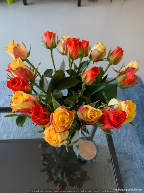Ik breng wat pakjes weg van kleding die ik verkocht op Vinted en haal mooie rozen op de markt. Geen kaas nodig deze week en ik loop met een grote boog om de dropkraam heen 😊. Op de terugweg langs de appie voor de boodschappen en daarna gelijk maar even wandelen.