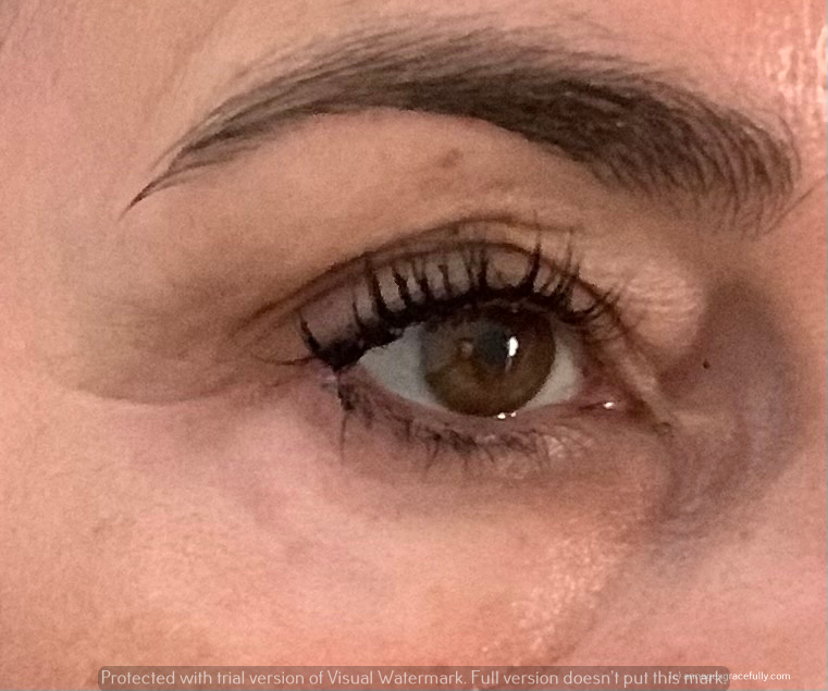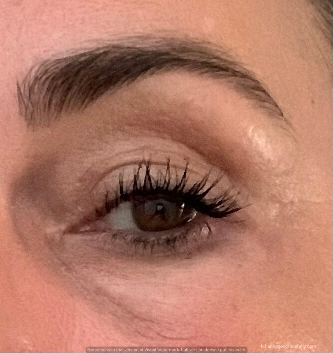 Hij brengt makkelijk aan heeft een ‘borsteltje’ van haren en dus niet van siliconen. Zelf draag ik altijd twee laagjes mascara en dat doe ik op de foto dus ook. Links is helemaal zonder, midden met 1 laagje en rechts met 2.