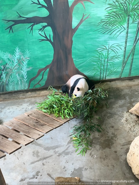 De panda’s (en de meeste andere dieren) ligger er uitgeteld bij. Ik vind wel dat de meeste dieren echt een mooi verblijf hebben met voldoende ruimte. Het is een leuk park.