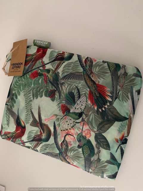 De regenponcho waar ik het vorige week over had kwam ook binnen. Ik had gekozen voor de print met Kolibri’s naar een ontwerp van Ernst Haeckel waar je ook schilderijen van kunt bewonderen in het Teylersmuseum in Haarlem. De kwaliteit is echt goed en hij komt echt in een mooi tasje. Geen idee of ik hem zou dragen maar toch leuk zo’n prijsje.