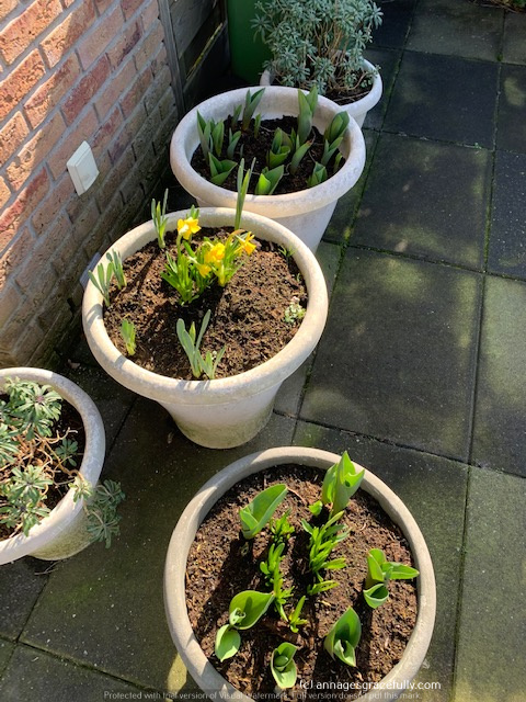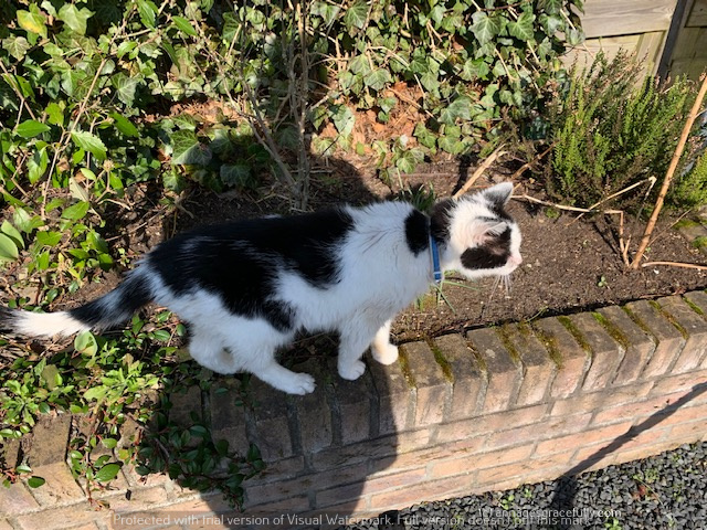 Echt wel een lente gevoel hoor, ik deed mijn straatje op vrijdag met azijn om de groene aanslag weg te krijgen. Skoet deed wat inspectierondjes door de tuin maar ze lag ook even lekker in het zonnetje. Mijn bloembakken schieten ook echt uit de grond nu 😊 ik word er wel blij van.