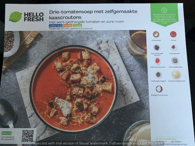 Uit de box hadden we toevallig 3x een gerecht met brood, weer eens niet goed opgelet met het kiezen, we hadden verse tomatensoep met croutons, pita met pulled chicken en broodjes hotdog hahaha nou ja, wat maakt het ook uit. Volgende week heb ik even geen box. Ik ben een beetje inspiratieloos zelfs met de box, twijfel ook qua bedrag wat het kost maar aan de andere kant vind ik het ook onwijs makkelijk en zeker omdat we allemaal werken is het wel ideaal. Even een weekje op pauze en nadenken.