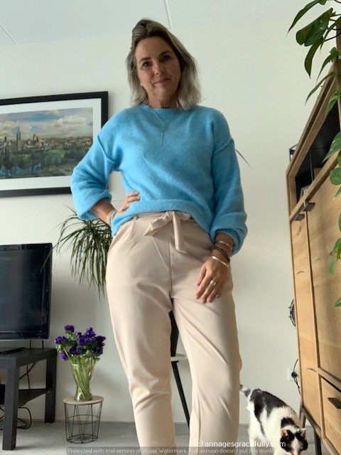 Op maandag droeg ik een ecru broek (heb ik ook een jasje bij) met de aqua trui, ik blijf die kleur echt heerlijk vinden. Op dinsdag mijn groene coltrui (nu het nog frisjes was wellicht de laatste keer dit seizoen?) met de zwart/witte broek. Op woensdag lekker jeans met de Reinders trui. Op donderdag ook een jeans maar dan de donkerblauwe met het jasje wat ik vorig jaar kocht. Ik vergat weer eens foto’s te maken. Ik kocht wel ook een nieuwe Reinders sweater, die zitten zo fijn, ik heb er inmiddels 3 ze blijven mooi na het (vele) wassen en zijn kwalitatief erg goed, wel voor mij echt truien voor thuis, zal ze niet zo snel naar het werk dragen.