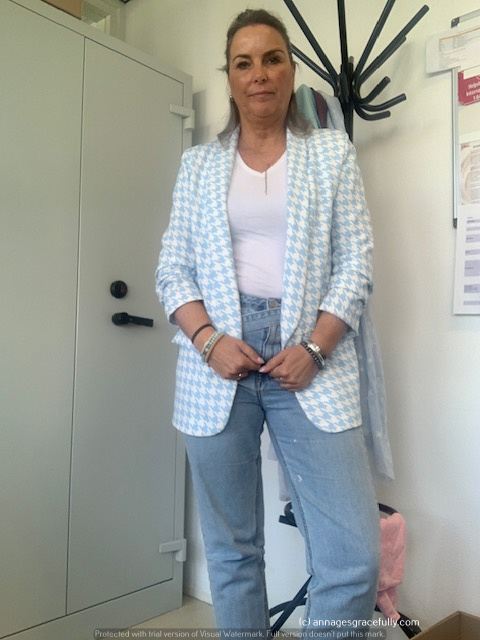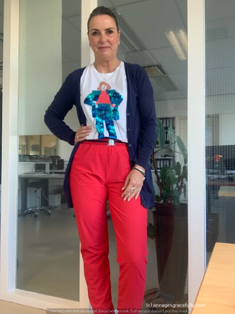 Dinsdag ging ik voor het geruite blazertje dat ik vorig jaar kocht, op woensdag een shirt, witte jeans en deel van de dag een vestje. Op donderdag Rode broek, glittershirt en vest en op vrijdag jeans, wit hemdje en geel vestje.