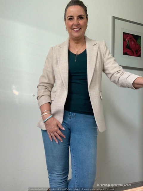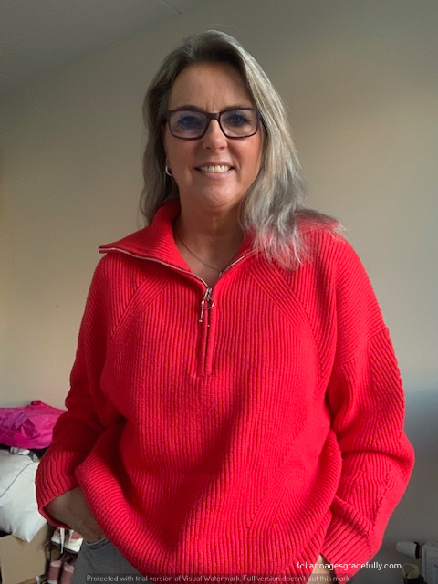 Op maandag droeg ik een ‘batik’ jasje dat ik onlangs kocht. Echt met heerlijke kleurtjes dus met heel veel te combineren ook. Kan zowel als netjes/zakelijk als lekker op een jeans gestyled worden. Voor 25,- een prima aankoop denk ik zo. Dinsdag ben ik vergeten op de foto te zetten 😊 op woensdag droeg ik de rode schipperstrui en op donderdag ‘huispak’ lees je straks meer over. Vrijdag weer de blazer van de H&M.