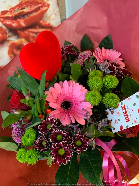 Afgelopen dinsdag was het valentijn. Nog nooit iets aan gedaan en dus ook nog nooit iets gekregen. Hilariteit op kantoor dan ook toen er een mooi boeket voor mij werd bezorgd. Van lieve W. natuurlijk en toen ik thuis kwam was er ook nog een kaartje. Ik had zelf ook een kaartje geschreven, toch leuk ondanks dat het allemaal erg commercieel is natuurlijk.