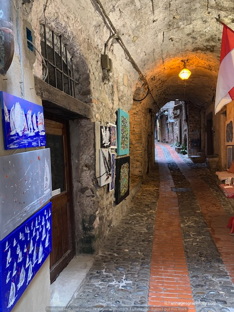Eigenlijk was dit een vrije dag maar de buschauffeur had een mooie trip naar San Remo en Dolce Aqua voor ons geregeld met een lunch proeverij. Echt genoten van deze dag wat is San Remo een leuke stad, er was een enorme markt echt niet normaal zo groot, lekker geslenterd met 2 andere dames uit het gezelschap, terrasjes gedaan en daarna door voor de lunch dit was in een heel oud plaatsje (bekend omdat Monet daar schilderde) Dolce Aqua, leuke proeverij met allerlei Italiaanse hapjes en daarna nog het stadje bezocht dat was veel klimwerk met veel nauwe straatjes, echt heel tof. Ook hier kocht ik een magneetje en een mooie schets van de nauwe straatjes, die zal ik even inlijsten en dan ook op de foto zetten.
