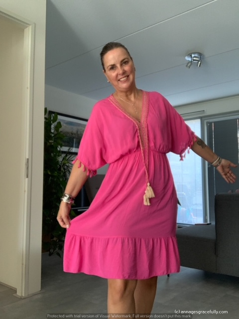 Op het werk draag ik het liefst een broek, thuis ook wel maar het weekend was het zo warm dat ik mijn vakantiejurkjes maar uit de kast had getrokken. Het groene jurkje is van de Wibra en het roze jurkje kocht ik laatst bij Terstal.