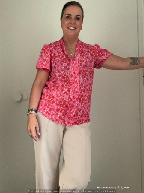 Blijft toch een leuke blouse die roze en ook geweldig die lila broek. Ha, ha die thee kan ik inmiddels ook wel gebruiken de (huishoud) soap bij mijn moeder gaat maar door. Ze kreeg vrijdag hulp van een man 75! die bij binnenkomst vertelde niet van schoonmaken te houden:-) en het baantje had omdat hij lang in het buitenland gewerkt had en te weinig AOW had. Op het verzoek te beginnen met afstoffen besloot hij eerst te stofzuigen de vloerbedekking met het borstelmondstuk:-) De vloeren had hij met een halve fles allesreiniger gedaan..de wc was schoongemaakt maar net voordat hij wegging moest hij zelf…en waren wc/vloer etc. vies (bah). Toen wij gisteren kwamen ook een bataljon fruitvliegjes om uit te roeien kwamen om 14.00 uur en gingen om 19.00 uur weg. Kan inmiddels een boek schrijven:-). Donderdag even de stad in geweest (Utrecht) met Babs, was gezellig. Wel heel, heel slordig van je huisarts gelukkig niet levensbedreigend maar toch. Fijne week! (is de drop al op :-))