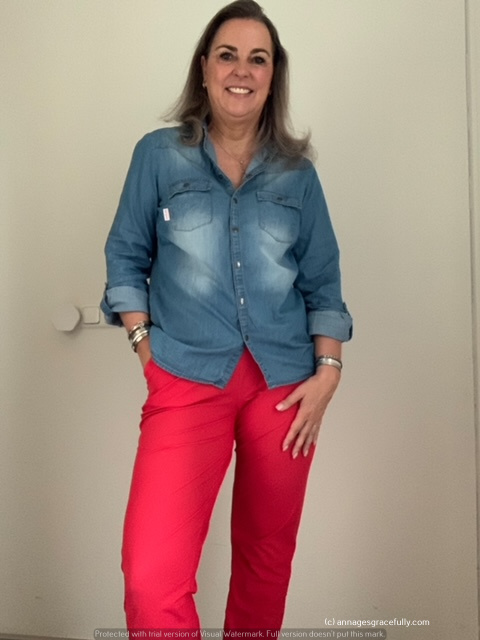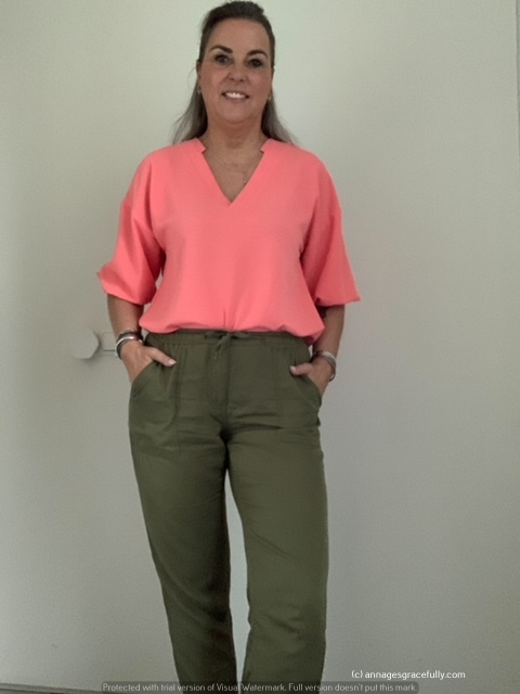 Deze week zat ik 2 dagen in Vreeland en 2 dagen op kantoor in Ede. Gekleurde broeken deze week 😊 en shirts met afwisselen lange mouwen en later in de week naar kort. Het was lekker weer dus het kon weer wat luchtiger. Op donderdag droeg ik een nieuwe broek in het Lila met een glansje, beetje back to the 80’s vibe.
