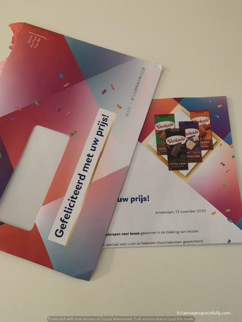 Dinsdag werd ik verrast met weer een prijs in de vriendenloterij. Nog een keer de chocoladerepen. Prima toch?! Ik vind ze lekker haha. Gelijk maar even via de site mijn 2 repen gekozen dus die vallen denk ik komende week weer in de brievenbus.