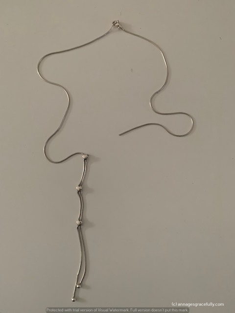 Toen ik maandag thuiskwam en mijn jas uitdeed viel mijn ketting van mijn nek ☹. Mijn heerlijke ketting die ik al ruim 20 jaar dag- en nacht draag. Gelukkig ben ik hem niet verloren maar ik was er echt wel van ontdaan. Hij is ook op een ‘gekke’ plek gebroken en ik vermoedde dus slijtage. Ik was dan ook bang dat hij niet meer gemaakt kon worden. Ik heb hem zaterdag naar de juwelier gebracht, die denkt hem nog wel te kunnen fixen maar gaf inderdaad aan dat de ketting wel wat slijtage vertoont en het advies om hem dus in elk geval niet meer s ’nachts om te houden. Volgende week kan ik hem ophalen.