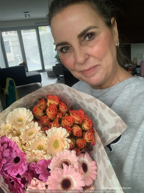 Vrijdag was ik al even naar de markt gegaan, die is in Laren en daar de bloemen gehaald want op zaterdagochtend had ik een afspraak met de kapper. Alle droge punten zijn weer weggeknipt en een beetje lagen erin. Mijn grijze lokken komen nu weer mooi uit en het valt weer wat beter.