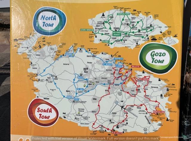 Voor de deur van het hotel – hoe lekker wil je het hebben 😊 – was de halte van de Hop on – Hop off bus. Er gaan twee routes over het eiland de zuidelijke route en de noordelijke route. Beide routes duren zo’n 3 uur als je nergens uitstapt. Dat hebben we in eerste instantie ook gedaan, eerst maar eens even de rondjes gemaakt en later besloten waar we er dan uit wilden. Uiteraard kun je ook met het normale openbaar vervoer gaan dat is een stuk goedkoper maar een dagticket met de hop on bus (en de oortjes die je daarbij krijgt zodat de gids je alles kan vertellen) kost 23 euro per persoon. Een meerdaagse ticket is goedkoper en je kunt het ook nog combineren met de haven cruise.