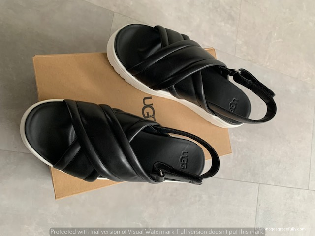 Zondag waren we weer heel vroeg op pad (ondanks het uurtje van de klok) want we wilden naar Roermond naar de outlet. We waren er mooi op tijd (rond half 11) en allebei goed geslaagd. Ik kocht deze sandalen van Ugg. Ik ben al een paar jaar op zoek naar sandalen maar met mijn smalle voeten kon ik echt nooit wat vinden. Ik schiet altijd met mijn voet over de voorkant omdat bijna alle sandalen veel te breed zijn. Deze zagen er smal uit en ja hoor, lijkt helemaal te passen dus die gingen mee naar huis.