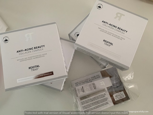 Ik heb toch weer een bestelling gedaan bij Revitaltrax voor nieuwe zakjes collageen. Ik heb nog een zak met die van Eclat Beauty liggen maar ik vind die toch wel erg zoet. Ik maak ze uiteraard wel op maar dus daarna toch weer terug naar Revitaltrax. Er was nu een aanbieding voor 1 doos gratis (dus 3+1) dus besloot ik maar vast te bestellen, dat is namelijk een gunstige aanbieding. Ik kreeg er ook nog een tubetje dagcreme met SPF 30 bij dus die ga ik ook voor jullie testen.