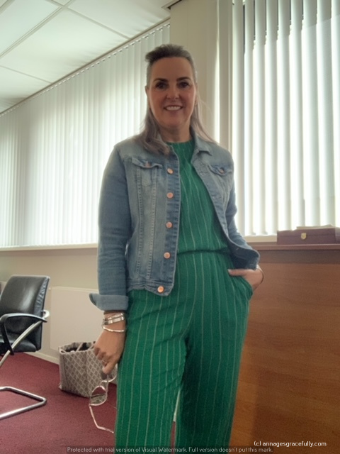Ik was aardig op pad deze week qua werk. Ik zat op 3 locaties, ik begon op maandag in Vreeland, dinsdag en woensdag zat ik op mijn locatie in Ede en op donderdag zaten we met het HR team op de locatie in Amsterdam. De kilometers dus wel weer gemaakt. Het leuke groene pak is van de Wibra. Die kocht ik voor mijn vakantie op Malta heb hem daar ook lekker kunnen dragen en hier dus nu ook, hier nog wel met een spijkerjack want het shirtje heeft korte mouwen dus dat is nog wel wat fris.