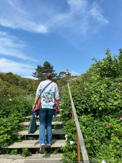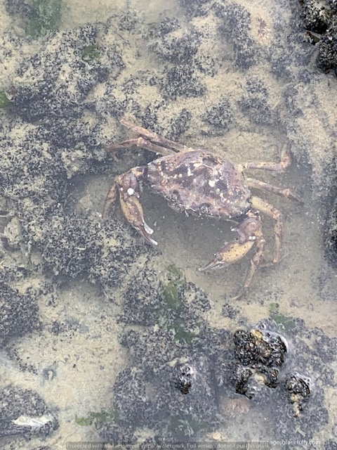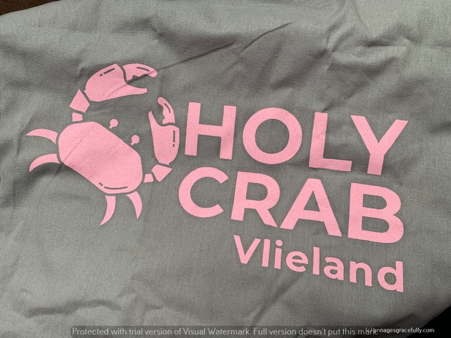Vrijdag hebben we al flink gewandeld. Het dorpsstraatje was eerst aan de beurt. Een bliksembezoek aan een museum(pje) dat daar was (over een Noorse schilderes die jaren op Vlieland heeft gewoond en prachtige werken maakte), daarna de klim naar de vuurtoren. Er was ook een bruidspaar die daar foto’s namen en die dus ook al die trappen op moesten. Uiteraard ging ik krabjes zoeken en dat kon dus voor de deur van het hotel. Bij laagwater was er een hele strook waar je op kon lopen en kon ik de boel afstruinen en ja hoor krab gevonden! Ook wat mooie oesterschelpen die gelijk meekonden naar het hotel voor een wasbeurtje. In de avond lekker gegeten.
