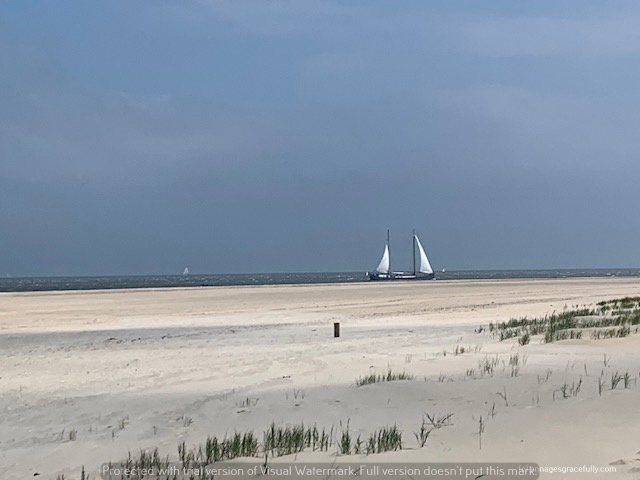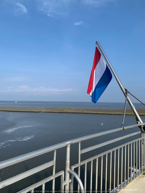 Dit weekend gingen we lekker naar Vlieland. Vrijdagochtend namen we de eerste boot wat dus betekende dat HJ al om 06:00 bij mij op de stoep stond. Pfff dat was even vroeg maar met een kopje thee achter de kiezen werd ik weer wat spraakzamer (mij niet bellen voor de thee 😉 en je mag best tegen me praten s ’ochtends vroeg als je maar geen antwoordt verwacht haha). We hadden dus de boot van 09:00 uur. Heerlijk weer hadden we dus bovenop het dek gelijk een plekje in de zon gezocht. De overtocht naar Vlieland duurt zo’n 1,5 uur. Het hotel lag letterlijk aan de overkant van waar de boot afmeerde en onze kamer was al gereed dus we konden gelijk de tassen boven brengen. De kamer was prima en vanuit bed keken we zo de Waddenzee op.