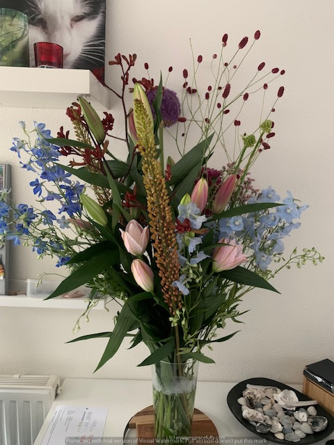 Vrijdagochtend haalde ik nog wel even zonnebloemen in huis. Dat doe ik elk jaar rondom de herdenking van MH17. Van mijn lief kreeg ik ook weer een prachtig boeket. Dus het huis staat weer vol met mooie bloemen deze week.