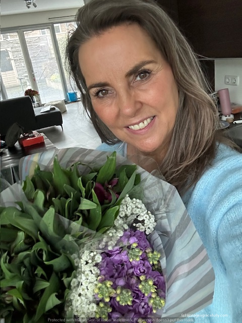 Daarna even langs de markt voor bloemen en toen heerlijk op de bank gezeten. Het was baggerweer dus theetje en boek erbij gepakt. Zaterdag was niet veel anders, even kort wat boodschappen gedaan, een pakketje weggebracht en wat in huis gerommeld.