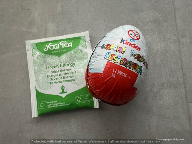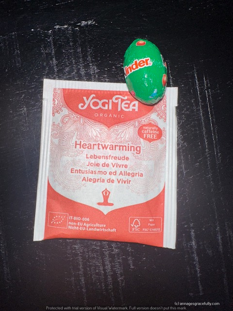 Uit de advent kalender van Kinder kwam uiteraard ook de nodige chocolade. Al moet ik zeggen dat ik de twee soor paaseitjes wel erg klein en karig vond maar goed. Op dag zes had ik ook een heus verrassing ei en die is altijd erg lekker. Ook de theetjes zijn dik in orde. Vind de thee van Yoghi altijd smakelijk.