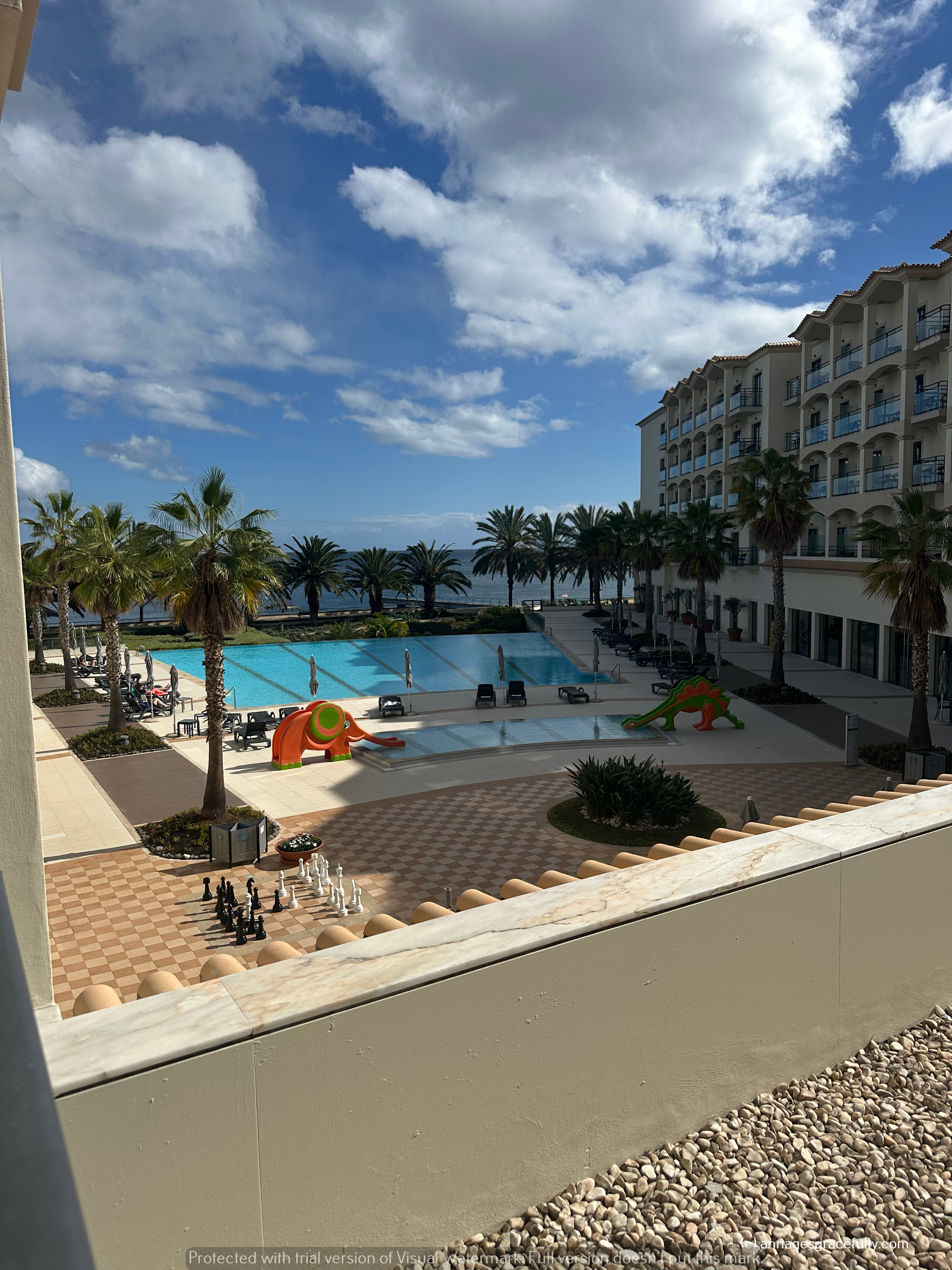 We waren dus al vroeg op de bestemming want in Madeira is het ook nog eens 1 uur vroeger dan bij ons. Het hotel lag slechts op 10 minuutjes van het vliegveld, en de kamer was al klaar dus dat was prettig. Koffer uitgepakt en gelijk aan de wandel gegaan. Het was heerlijk weer dus koffietje op het terras en de buurt een beetje verkend. Het is een mooi hotel, van het vliegverkeer heb je eigenlijk nauwelijks last, leuke eettentjes in de omgeving en dus een mooie boulevard om s’ avonds je wandelingetje te doen. De ‘rolling stones’ het is allemaal pebblestrand (dus keien) was echt een zalig geluid.