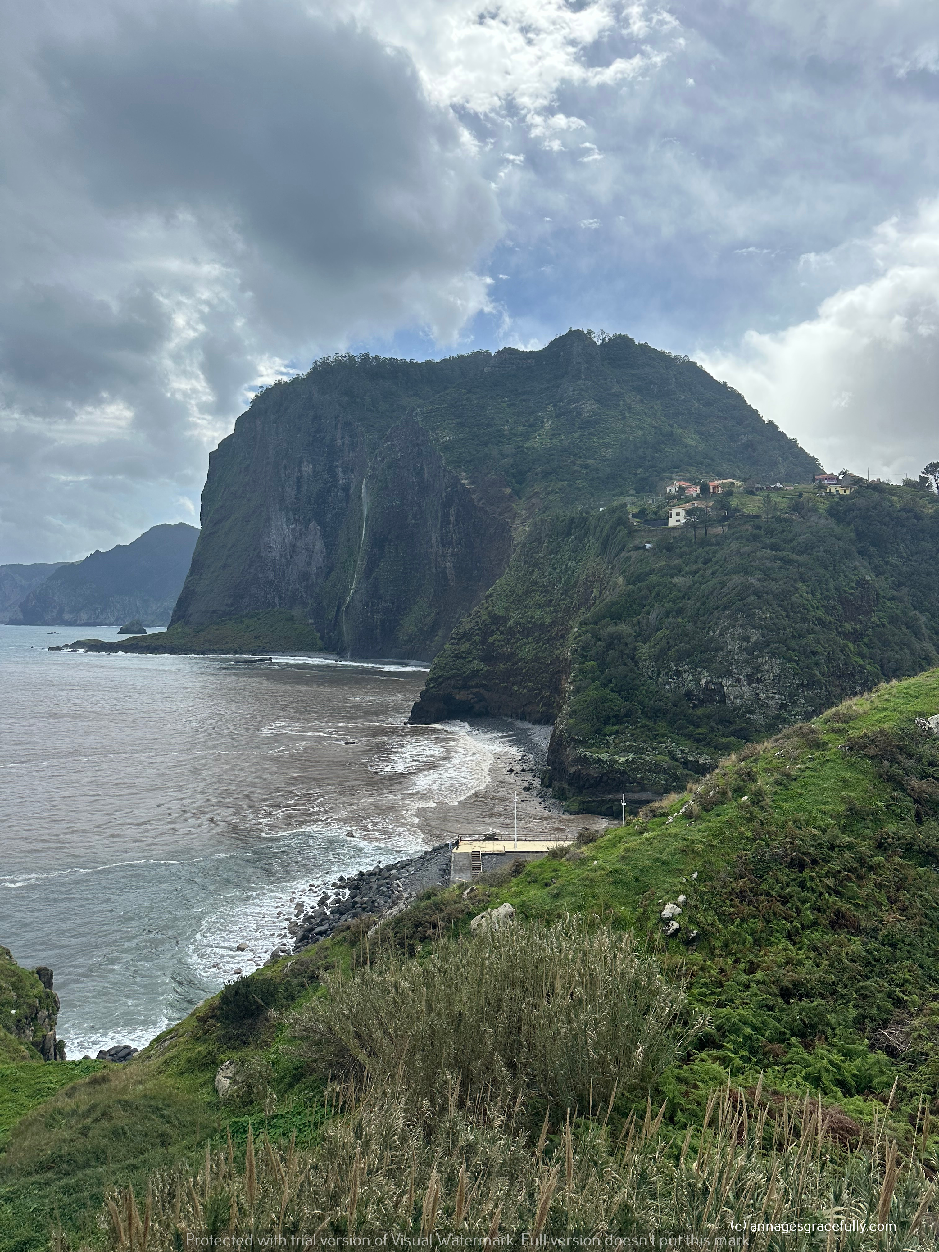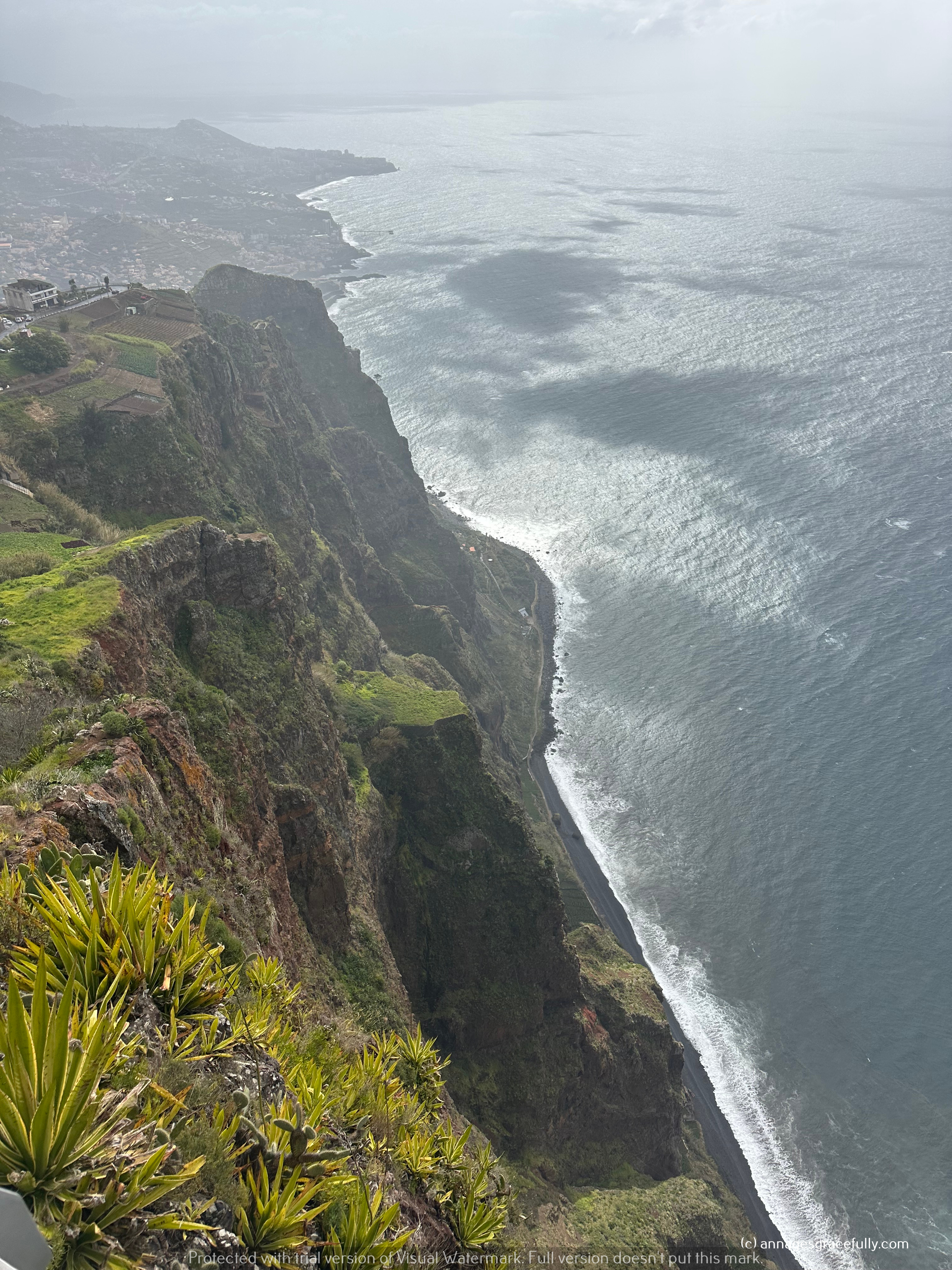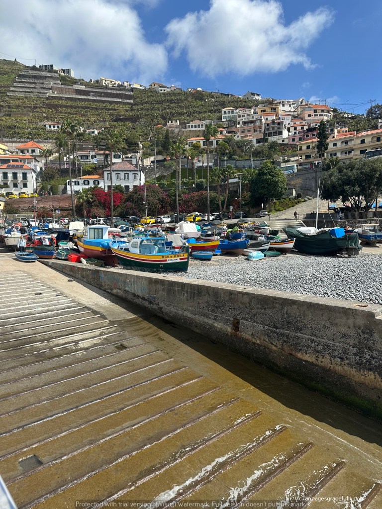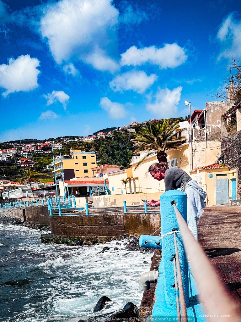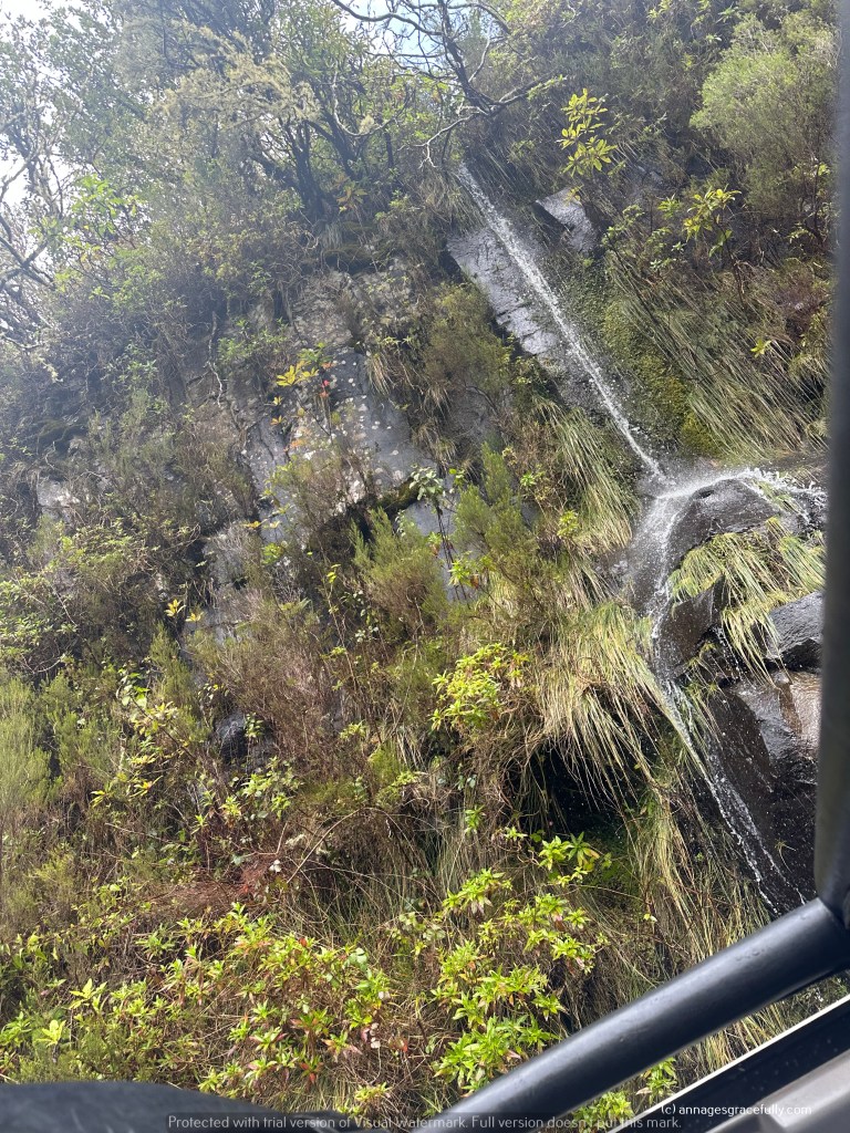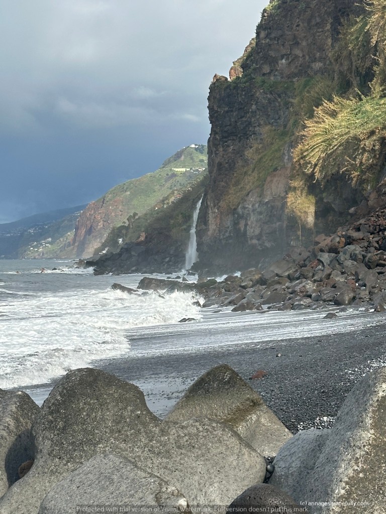 De natuur is echt niet normaal, wat een pracht en nu stond het meeste nog niet eens in bloei. Madeira wordt natuurlijk het bloemeneiland genoemd. Enorme kliffen, veel watervallen, rotspartijen, groene vlaktes, bananenplantages, suikerriet, veel fruit ook het is bijzonder en allemaal even prachtig om te zien. We hebben het mystieke bos Funal bezocht – was die dag dus niet mystiek want de zon scheen (normaal is dat bos altijd in nevelen gehuld), een Madeira wijnhuis bezocht, op grote hoogtes op een glazen plateau gestaan en op de 3 na hoogste berg gestaan met windkracht 10 dat was wel even heftig haha. We hebben best goed weer gehad op de laatste 1,5 dag na toen kwam storm Martinho voorbij. Het is trouwens heel erg veranderlijk het weer, het gaat echt van 20 graden met zon naar 10 graden met regen, veel wind en weer terug. Een buitje duurde niet lang en dan was het weer prima in orde. Hoe later je in het jaar gaat dan is het wel veel warmer natuurlijk.
