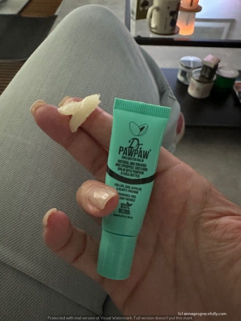 Ik had weer wat hoor! De lippenbalsem die ik altijd bij de zithoek heb staan was leeg, dus uit mijnvoorraadje plukte ik een tubetje van dr. Paw Paw – niet mijn favoriet als het op lippenbalsem aangaat maar vort, we maken het gewoon lekker op. Deze kwam uit de Lookfantastic box was een tijdje terug. Toen ik in het tubetje kneep hoorde ik wel een poef maar er kwam niets uit. Ik vermoedde al dat de achterkant kapot was gegaan maar ik zag niets dus gewoon nog een keer flink knijpen 😉 pff stommerd want inderdaad de achterkant was opengeklapt maar omdat ik een wit shirtje droeg die dag had ik dus niet gezien dat ik al een lekkere klodder om mijn trui had zitten ☹ gets, nou ja, ik gebruik hem gewoon de komende weken en dan kan hij als hij uitdroogt in de prullenbak. Lekker handige aktie weer haha.
