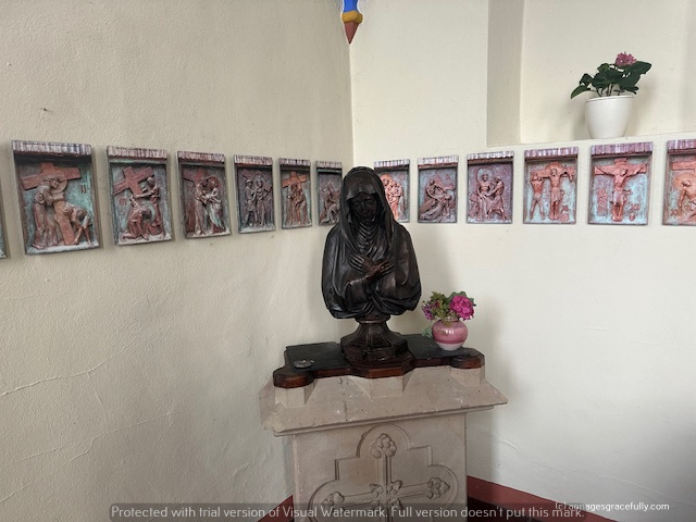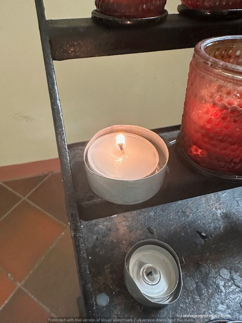Boven op de berg een klein kerkje dat open was dus even een kaarsje aangestoken.