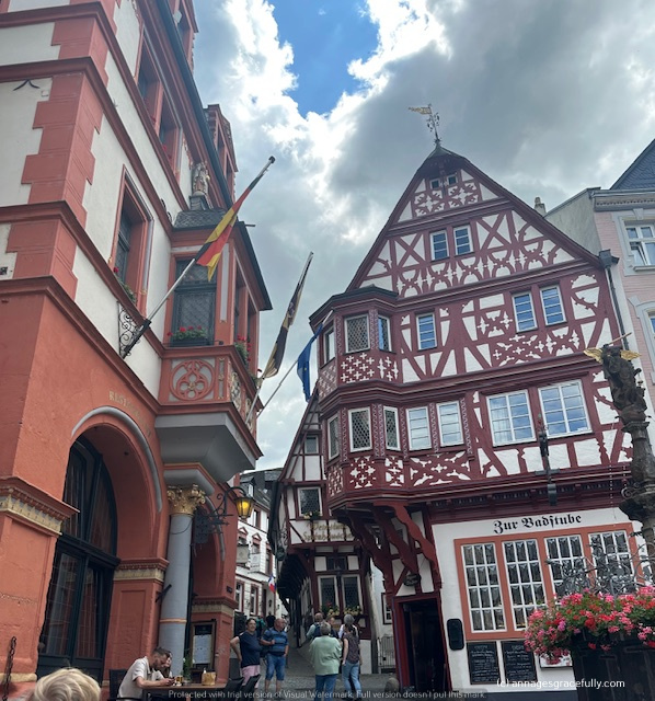 Het was niet heel druk onderweg, we hadden een klein beetje oponthoud maar we waren tegen 6 uur bij ons verblijf. We hadden een Gastezimmer 😉 direct aan de Moezel dus we hebben de tassen op de kamer gezet en zijn richting Kröv gegaan om wat te eten.