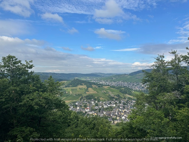 Het Moezelgebied staat natuurlijk vooral bekend om de wijn. En tsja dat drinken wij niet haha dus voor anti-wijnliefhebbers als wij zou je denken hebben we er weinig te zoeken. Maar het gebied is echt prachtig, wel zie je zover als het oog reikt alleen maar wijnranken. Alles was ook nog eens mooi groen dus echt een prachtig uitzicht waar je ook keek.